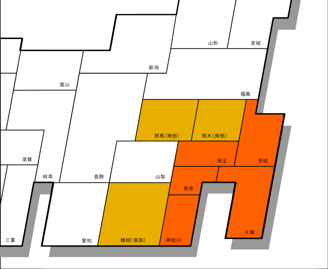 千代田区、中央区、港区、新宿区、文京区、台東区、墨田区、江東区、目黒区、大田区、世田谷区、渋谷区、中野区